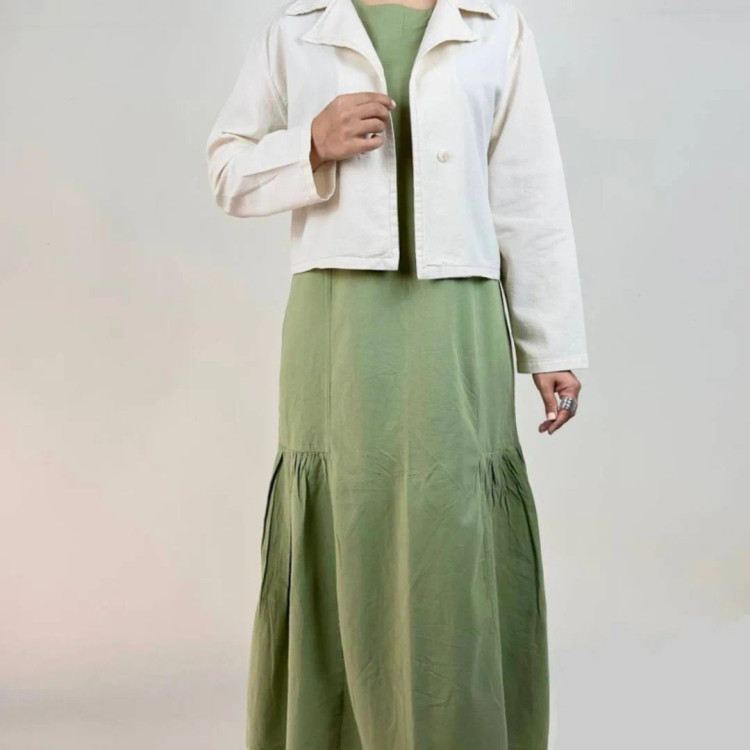 کالکشن شیک و به روز بهاره شامل سارافون و کت با قد سارافون ۱۳۰ و قد کت ۵۰. فری سایز تا ۴۴ و دور سینه ۱۱۰. پارچه لینن درجه یک. رنگ آدامسی موجوده