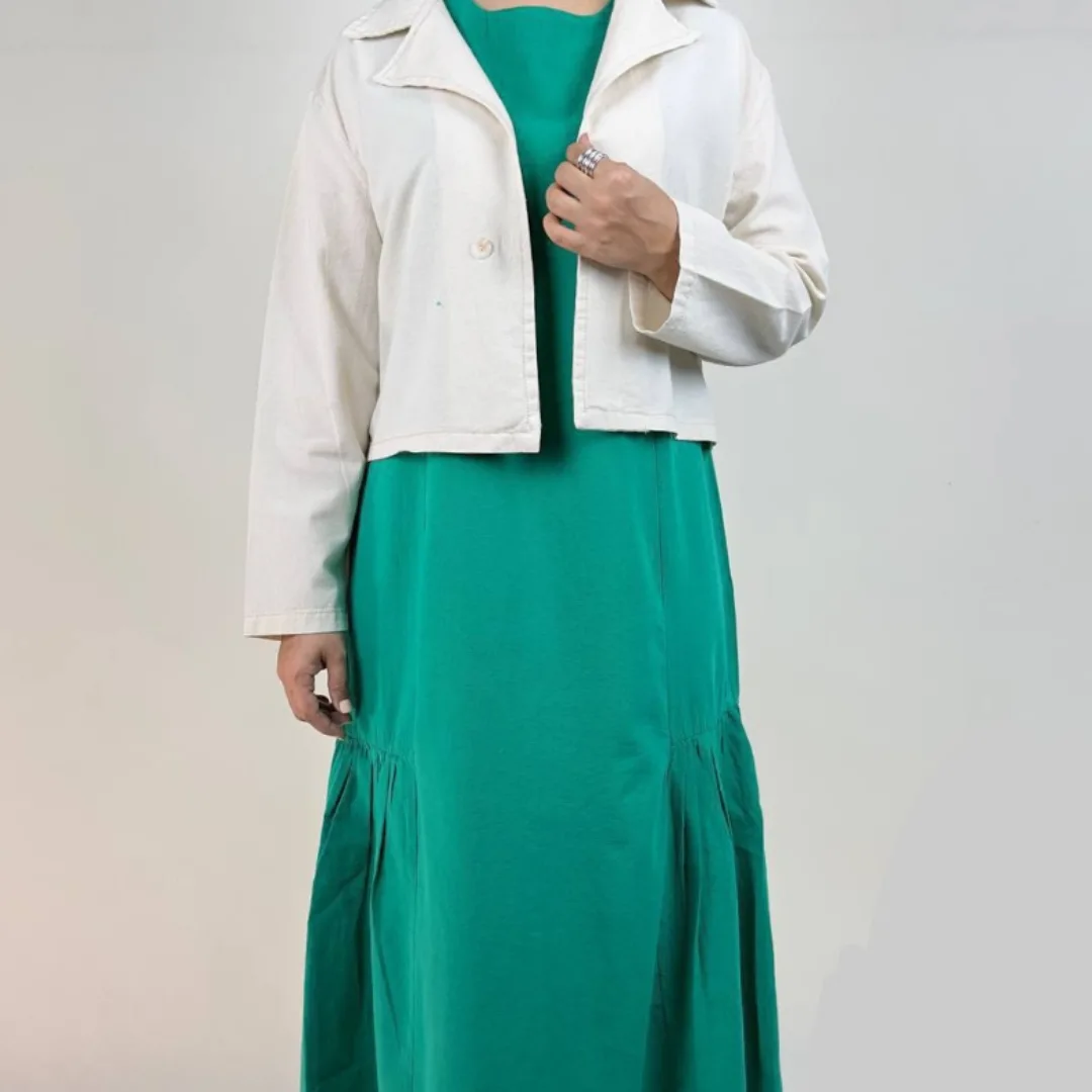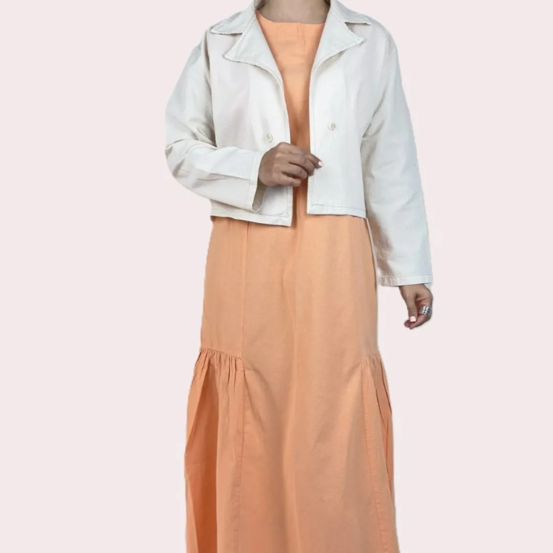کالکشن شیک و به روز بهاره شامل سارافون و کت با قد سارافون ۱۳۰ و قد کت ۵۰. فری سایز تا ۴۴ و دور سینه ۱۱۰. پارچه لینن درجه یک. رنگ آدامسی موجوده